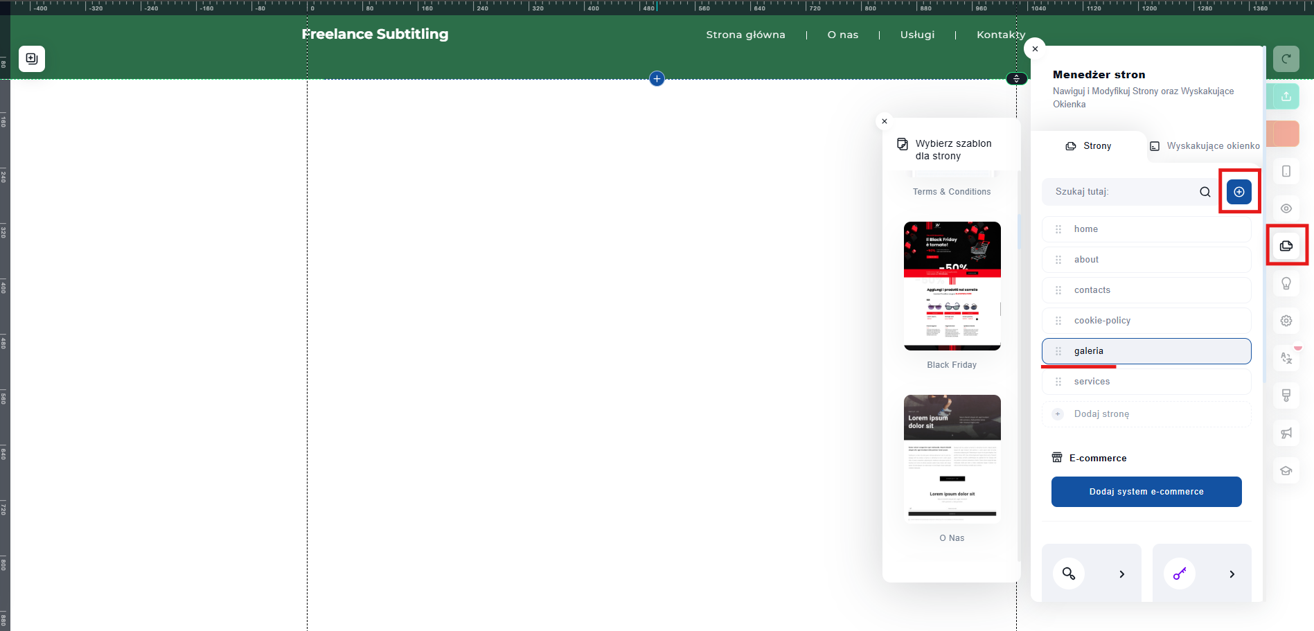 3. Kliknij na ikonę "+" aby dodać nową stronę.