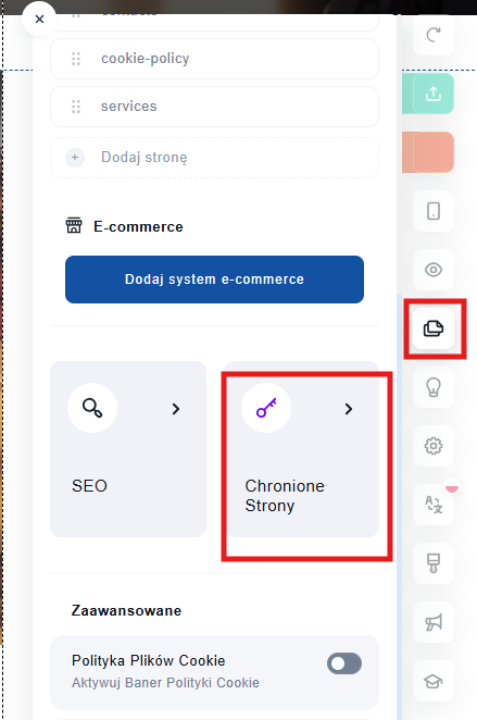 7. Z sekcji Strony po lewej wybierz stronę, którą chcesz zabezpieczyć i kliknij na jej nazwę.