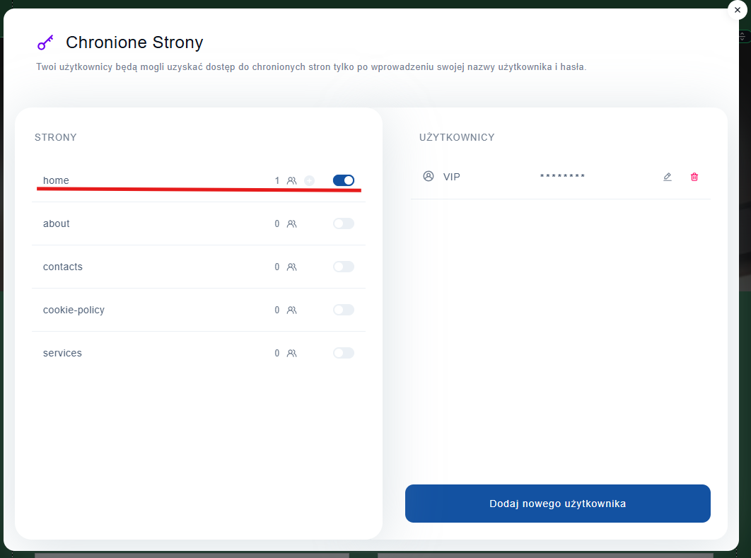 10. Skorzystaj z suwaka obok liczby użytkowników, aby aktywować stronę chronioną.